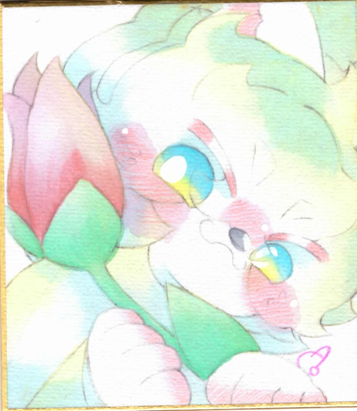 サイズ【136×121mm】の寸松庵サイズの色紙にコピック、色鉛筆で描きました